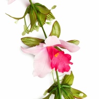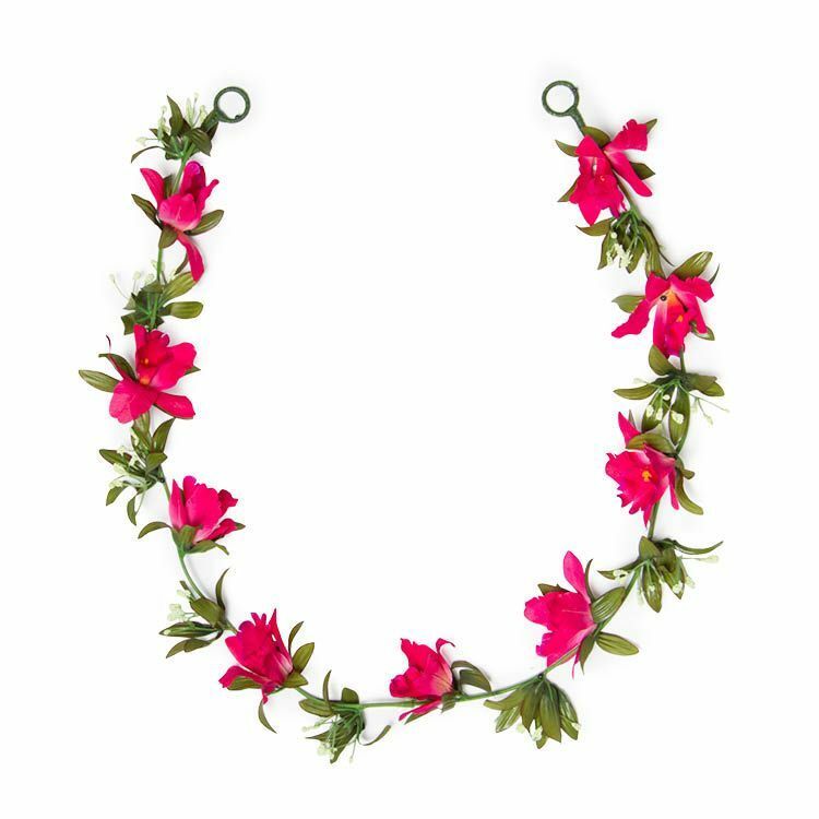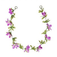 These Hibiscus flower garlands are held by the young dancer in the RAD Grade 2 dance ""C"". Lightweight and easy to hold with loops for the fingers, the flowers are interspersed with green leaves. They are available in three colour ways of plain Fuschia, plain Jacaranda and two tone Pale pink and Fuschia.