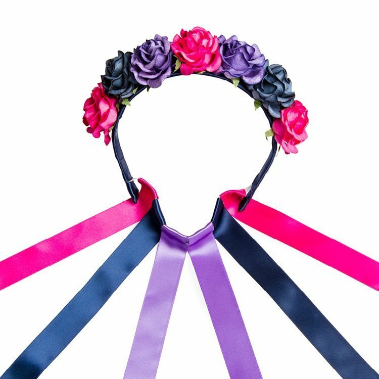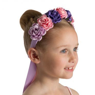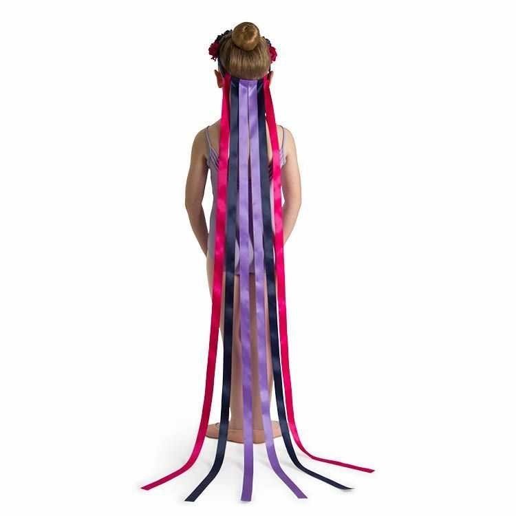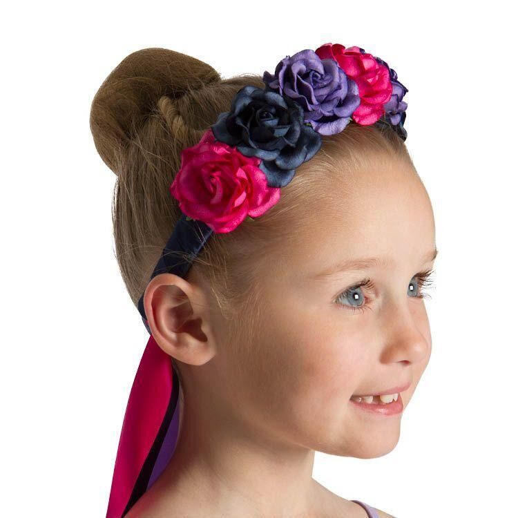 Designed for the RAD Grade 3 Ukrainian dance, these beautifully made rose flower head dresses compliment the new colours of the Bloch official RAD leotards. They are available in two colour ways, a light combination Candy Pink, Lilac and Jacaranda, and a darker combination of Fuschia, Jacaranda and Navy. The flowers are well attached to a comfortable headband with secure elastic to hold it in place when on the head. The long quality satin ribbons are the traditional length to hold during the dance