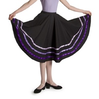 This classical national character skirt is suitable for class and examination wear, featuring a full circle skirt that comes pre-sewn with four different coloured satin ribbons. Hook and eye fastening allows for easy wear with an elastic insert into the waistband for a versatile fit.