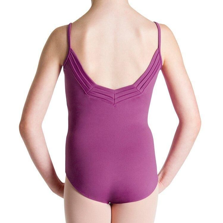 Cami strap Microlux™ leotard with pleated V neckline front and back