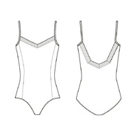 A cami strap style leotard with shaped princess line front seams. The front V neckline features a three pleat design which continues in a pentagon shaped back. The standard legline flatters all body shapes and the front is lined for modesty and comfort.