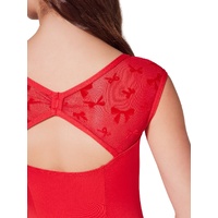 The Encore Leotard from the limited edition Take a Bow collection is designed for dancers who love to dazzle! This charming raglan cap sleeve leotard features a stylish scoop front and enchanting bow pattern mesh sleeves that add a touch of whimsy. With flattering princess seams in both the front and back, a soft V back neckline, and a ruched center back, this leotard ensures a comfortable fit. The bow pattern back mesh yoke and lower back opening make for delightful details.