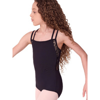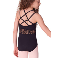 The Lace Camisole Leotard features a soft scoop front neckline and double straps at the front, this leotard offers a flattering fit for every dancer. With stretch lace inserts at the front armhole and a diamond strap detail at the back, it's both stylish and supportive. Whether in the studio or on stage, this leotard lets you move with grace and confidence.