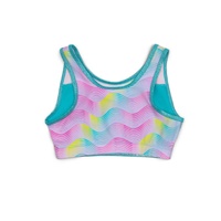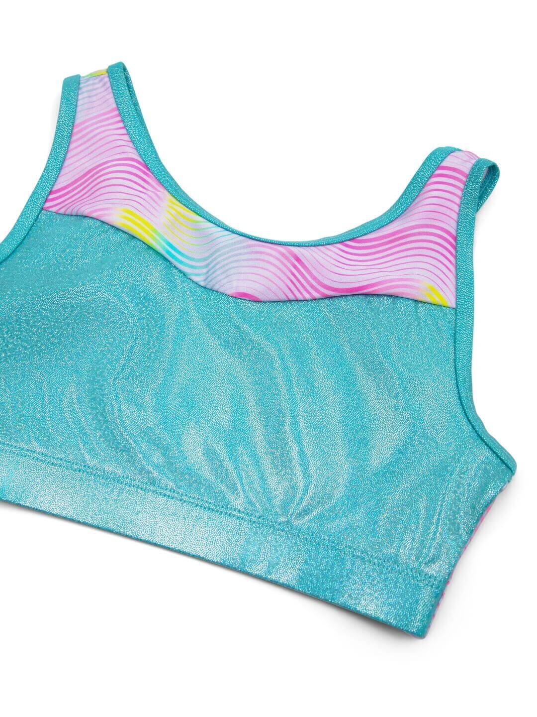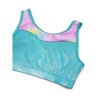 Ride the wave in style with the Tropical Top from the Sunset Wave collection. Made from a flexible blend of Nylon and Lycra, this top offers the perfect combination of comfort and shimmer with its foil fabric accents.