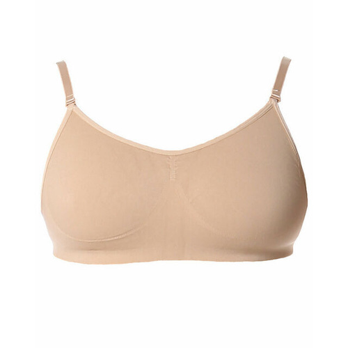 Clear back convertible dance bra with 2 different clear back strap lengths provided.