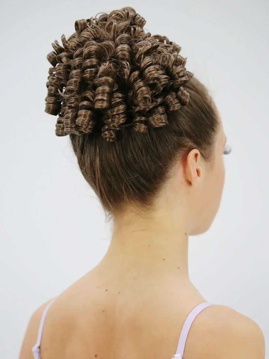 A tightly curled dancer's wiglet made from high quality nylon ringlet curls.