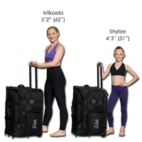 Are you looking for the ULTIMATE dance bag for dance competitions? You’ve found it! The Dancer’s Dream Duffel. Our rolling dance bag is an essential addition to any dance competition — with everything from a Patent Pending one-touch telescoping costume rack, garment bag and accessory box, to a folding stool! You get smart, convenient storage and a handy competition garment rack all in one.