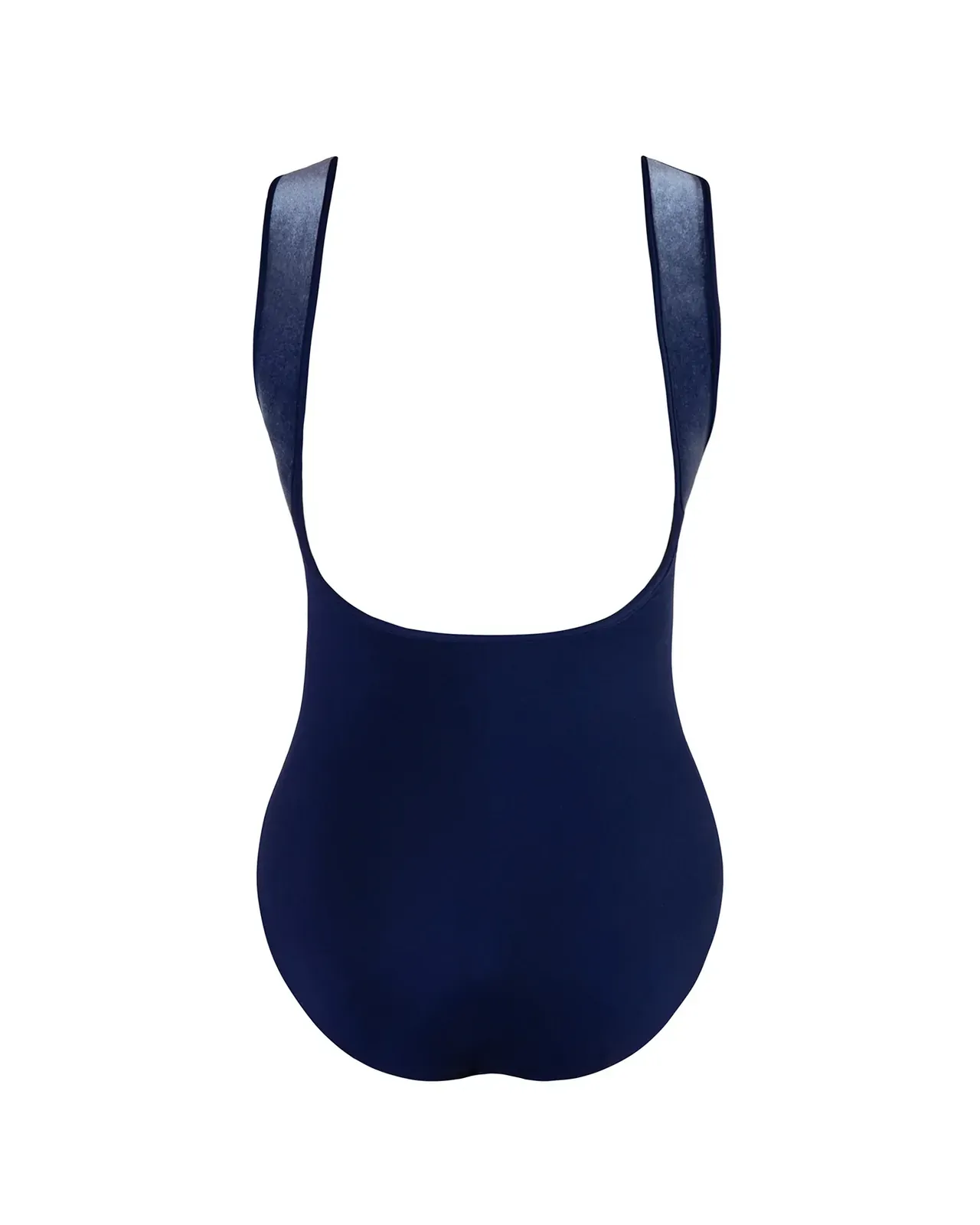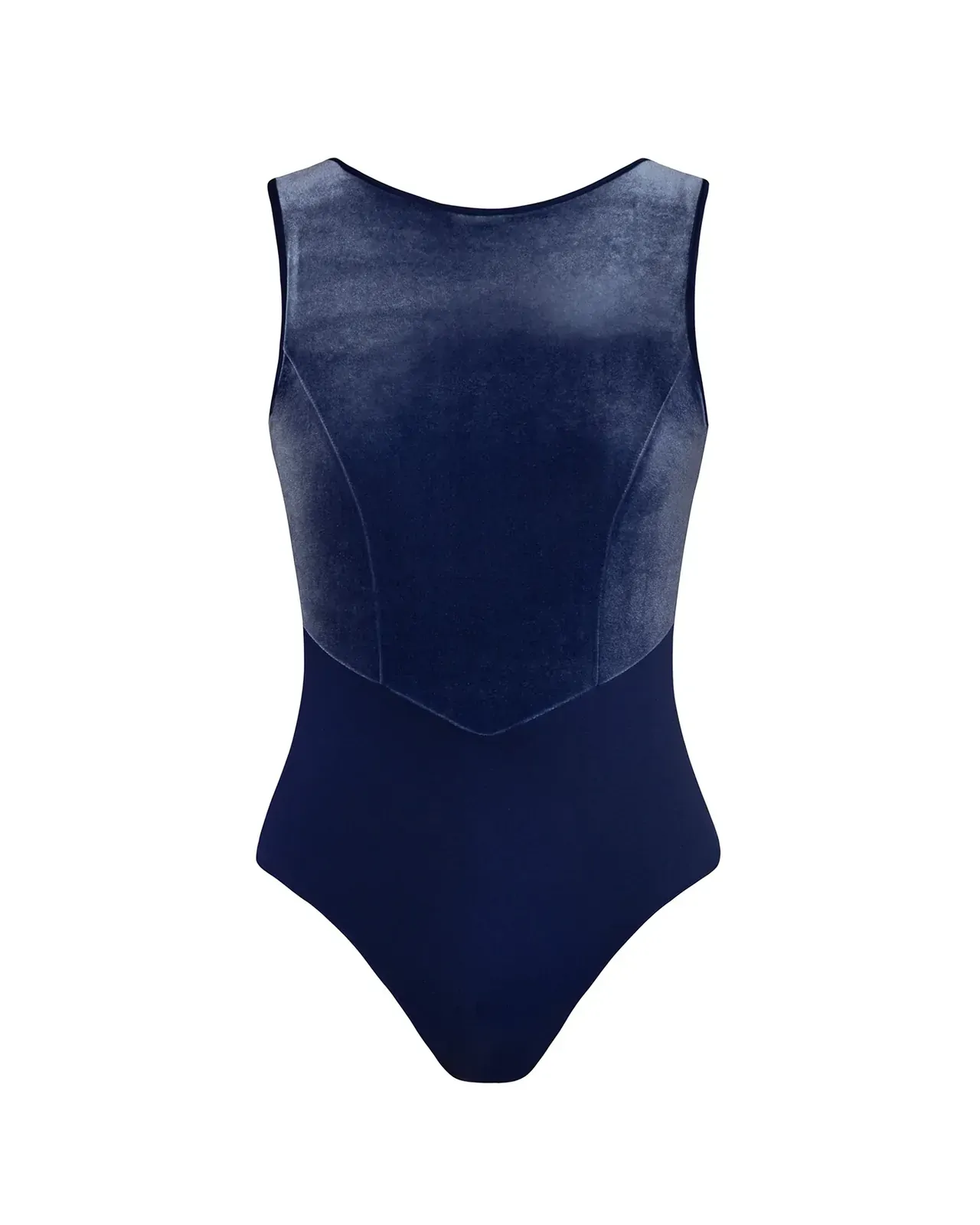 Energetiks Veronica Low Back Velvet Leotard; Navy; Adult Large