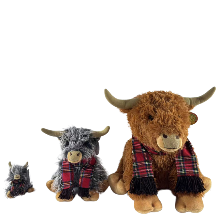 Introducing Hamish the Highland Cow, a delightful plush toy brought to you by Mad Ally! This soft and lovable Highland Cow is perfect for cuddling and playtime, making it an ideal companion for children and adults alike.