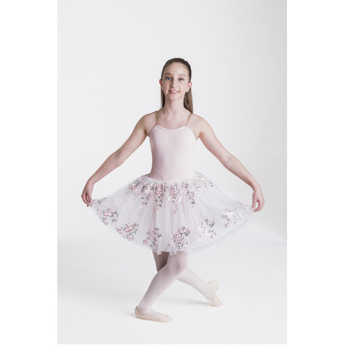 The Floral Romance is a classic romantic tutu design. The bodice features a flattering v-line stitch and skirt is embroidered with exquisite flowers.