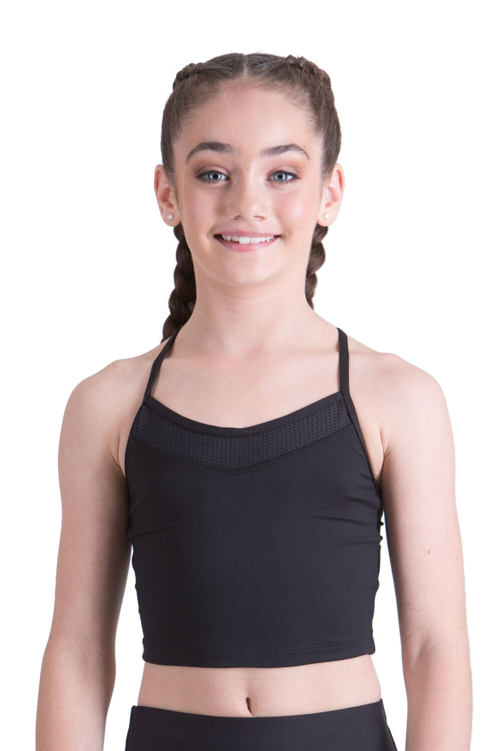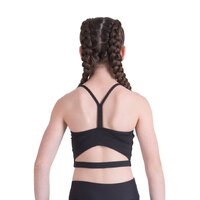 Mid length crop top, supportive split back style, with y-shape-to-shoulder straps