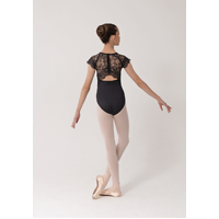 At the back, the stunning lace detailing continues with a pretty open lower-back cut-out, finished with a secure zip closure for ease of wear. This eye-catching back design adds a modern performance feel, making the Leah Leotard just as suitable for stage and competition as it is for class.