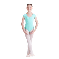 Featuring a beautiful leaf pattern print on light mesh, cap sleeves, princess lines and an open crossover back.